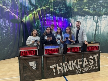Pic 1: The student winners of the trivia game. Left to right: Mackenna Thomas, Tillie Keller, Sam Tucker, Olivia Thomas, and Presley Ramsel.