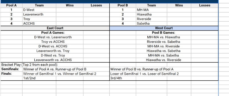 JV Volleyball @ DWEST VB Tourney @ Highland (402 E Main St., Highland, KS). Troy will play at approximately 9 AM.