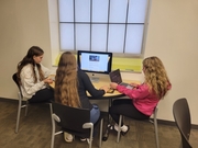 Pic 2: Ruthie Geiger, Timber Moenkhoff, and ZayLee Baskins work on their presentation.