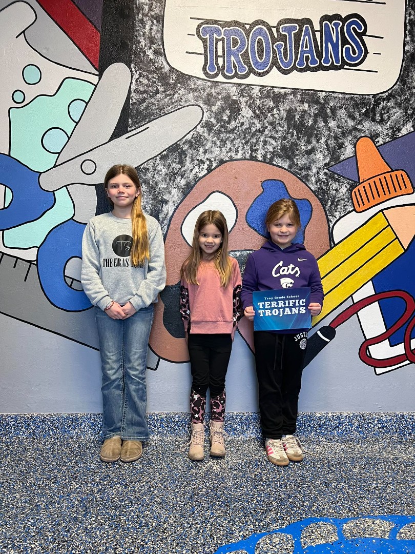 The Terrific Trojans for this week are Oakley Moenkhoff-5th Grade, Mabel Masters-Kindergarten, and Maizy Greaser-Kindergarten. Way to go, Trojans! ![]()