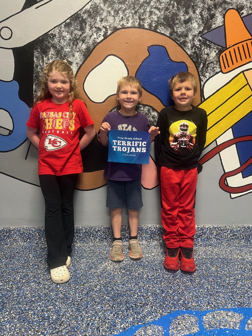 Terrific Trojans are chosen for displaying the monthly character traits. The trait for October is Generosity. These students demonstrate generosity by not just thinking about themselves, but looking for ways to help people around them. In our school, generosity might look like sharing supplies with a classmate, inviting someone to join your game at recess, or offering kind words when a friend is feeling down. When we practice generosity, we make our school a happier, kinder place! The Terrific Trojans for this week are Billy Shelton-2nd Grade, Bob Smith-1st Grade, and Maddox Rathmann-2nd Grade. Way to go, Trojans!
