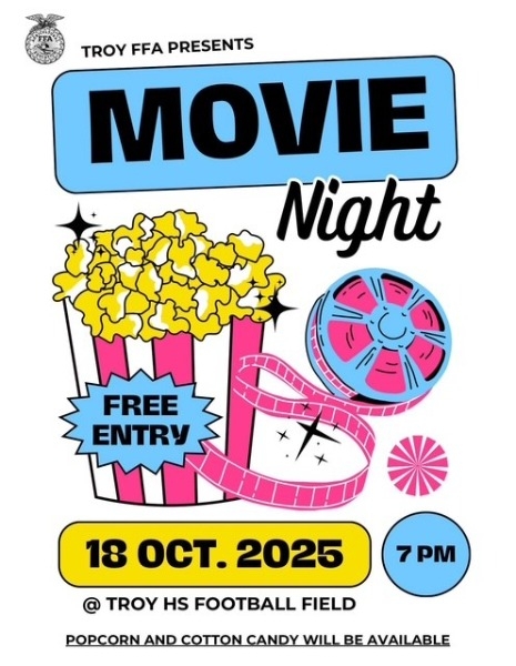 The Troy FFA will host a movie night on Sat., October 18 at 7 PM.